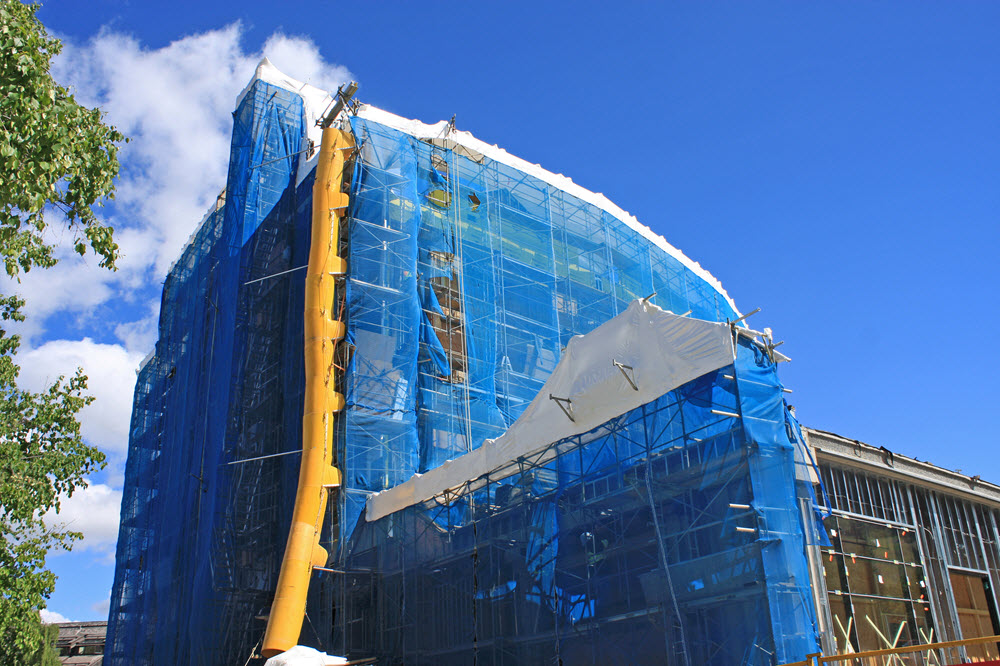 تغليف السقالات أثناء البناء.